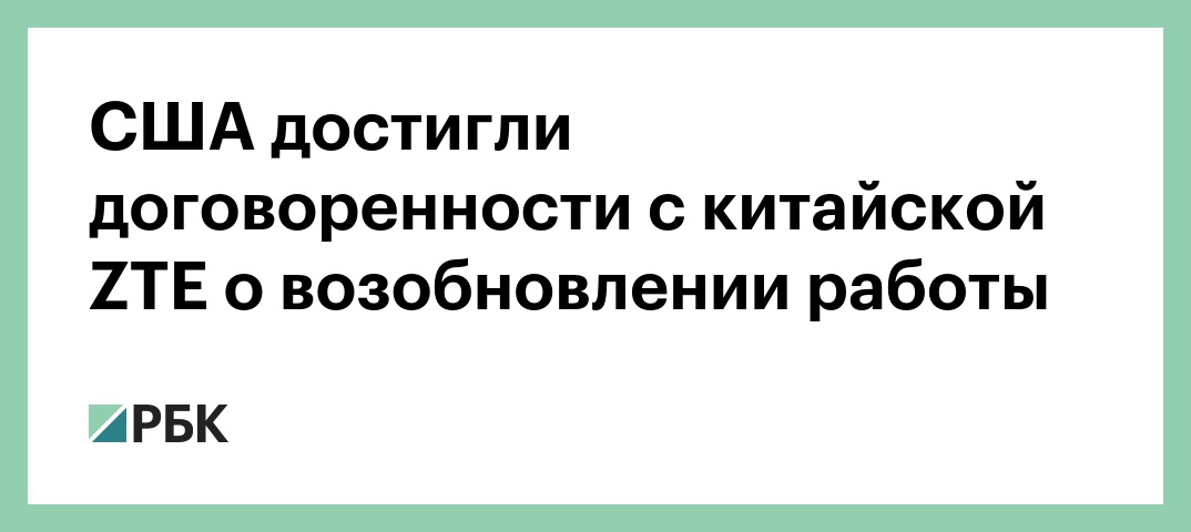 Министр торговли США Уилбур Росс заявил, что Вашингтон достиг договоренности с китайским производителем смартфонов ZTE Corp., благодаря которой компания сможет вернуться на рынок. Об этом он сообщил в интервью телеканалу CNBC.