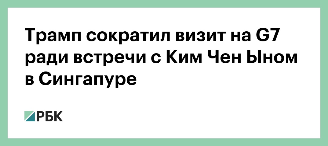 «Президент Трамп покинет саммит G7 в Шарлевуа [Квебек, Канада] в 10:30 утра в субботу [17:30 мск 9 июня] и отправится прямо в Сингапур», — заявила пресс-секретарь Белого дома Сара Сандерс.