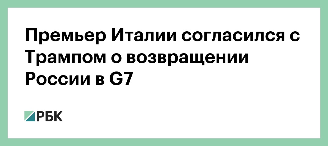 Премьер-министр Италии Джузеппе Конте заявил, что согласен с президентом США Дональдом Трампом о том, что Россия должна присутствовать на саммитах G7. Его слова передает Reuters.