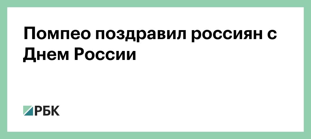 «От имени президента, США и американского народа я поздравляю Россию и ее народ с Днем России. В этот день мы чествуем граждан России и их стремления к демократическим принципам всеобщей свободы, гражданских свобод и верховенства закона», — заявил Помпео.