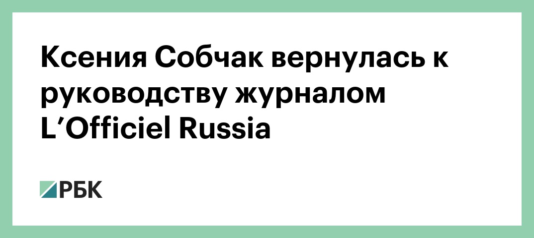 Медиагруппа ACMG сообщила о том, что Ксения Собчак возвращается в журнал L'Officiel Russia на должность главного редактора после отпуска, который у нее закончился 6 июня. В официальном заявлении указывается, что перед Собчак стоит задача значительно усилить позиции журнала на российском рынке.