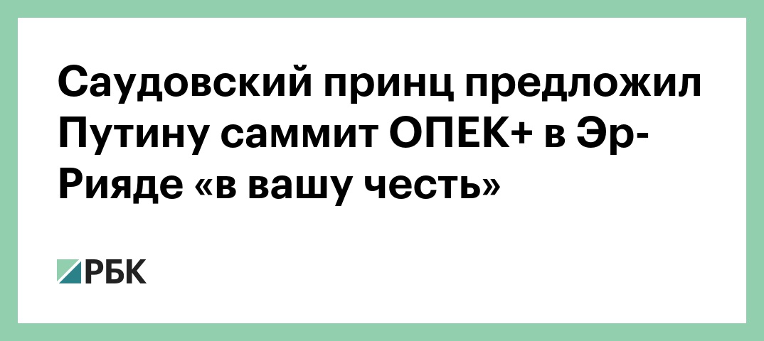 Саудовский принц предложил Путину саммит ОПЕК+ в Эр-Рияде «в вашу честь»