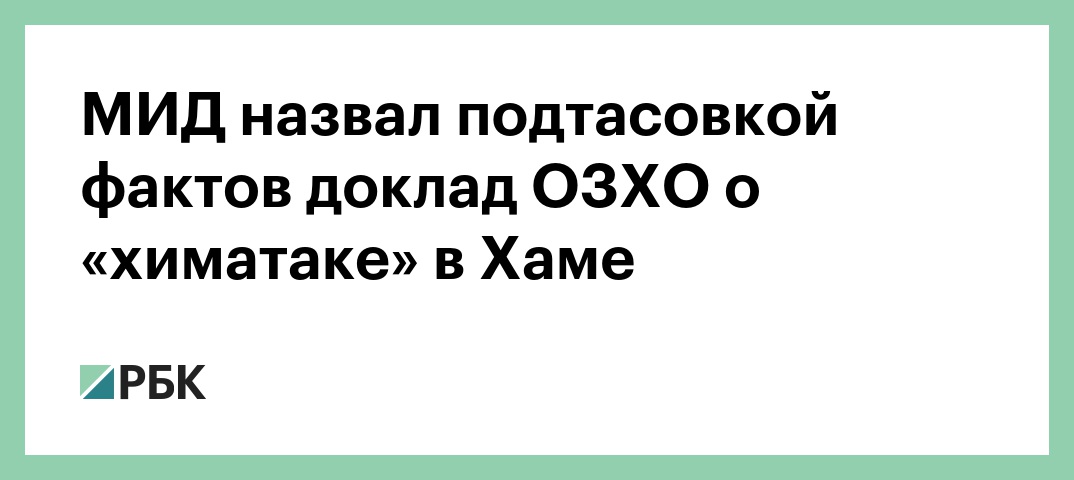 «После первого прочтения доклада становится очевидным, что методы работы миссии ОЗХО по-прежнему далеки от предъявляемых требований по сбору и анализу информации о применении отравляющих веществ», — сказала представитель российского внешнеполитического ведомства. «Мне кажется, что все, что происходит — это подтасовка фактов, недостоверной информации, это такая компиляция фактов и фейков», — сказала она.