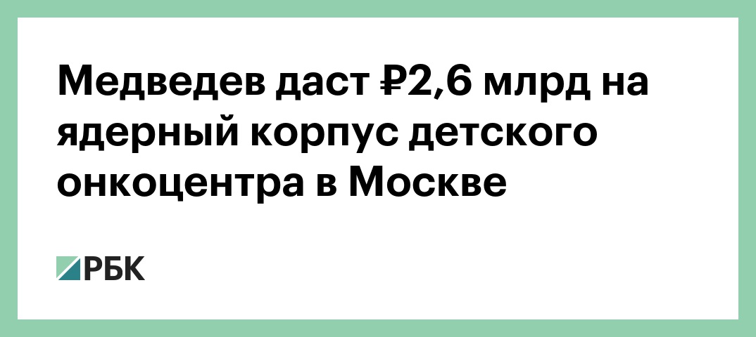 Медведев даст ₽2,6 млрд на ядерный корпус детского онкоцентра в Москве