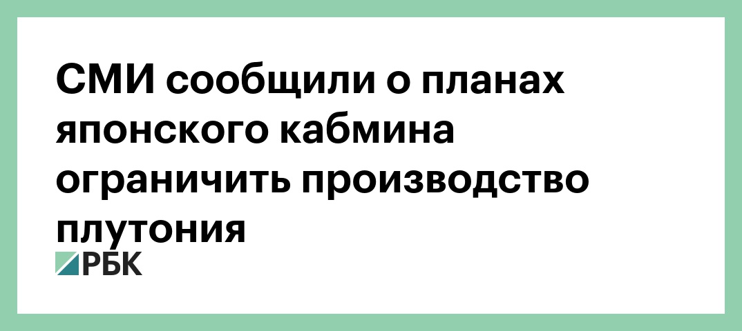 Количество производимого плутония в Японии пересмотрено впервые за 15 лет. Новую политику по этому вопросу из пяти пунктов кабмин Японии представит в течение июня. Кроме того, правительство планирует также пересмотреть базовый энергетический план.