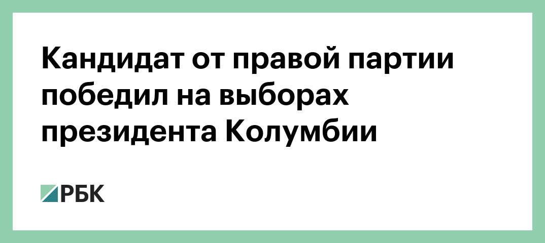 Кандидат от партии «Демократический центр» Иван Дуке побеждает во втором туре выборов президента Колумбии, набрав более 50% голосов избирателей. Об этом сообщает Reuters.
