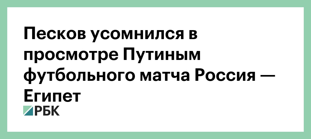 Президент Владимир Путин, «скорее всего, вряд ли» будет смотреть матч ЧМ между сборными России и Египта в прямом эфире, так как в это время будет с визитом в Минске. Об этом журналистам заявил пресс-секретарь президента России Дмитрий Песков, сообщает корреспондент РБК.