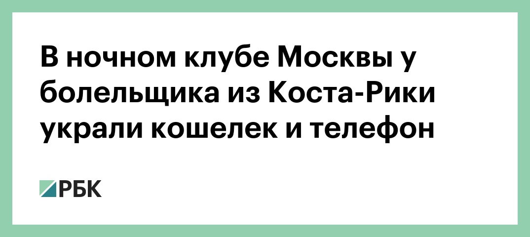 В одном из столичных ночных клубов неизвестные похитили кошелек, телефон и документы у болельщика из Коста-Рики Карлоса Лузуриаги 1974 года рождения. Об этом РБК сообщил источник в МВД по Савеловскому району Москвы. Также об этом сообщил источник «Интерфакса».
