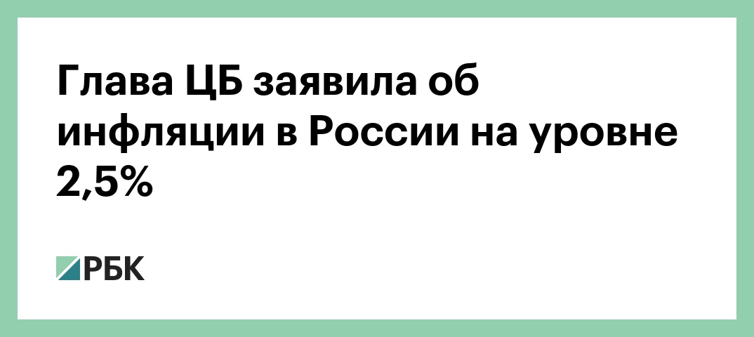 Глава ЦБ заявила об инфляции в России на уровне 2,5%