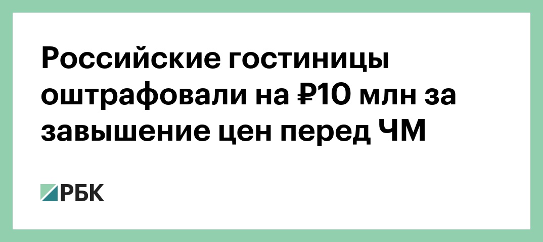 Российские гостиницы оштрафовали на ₽10 млн за завышение цен перед ЧМ