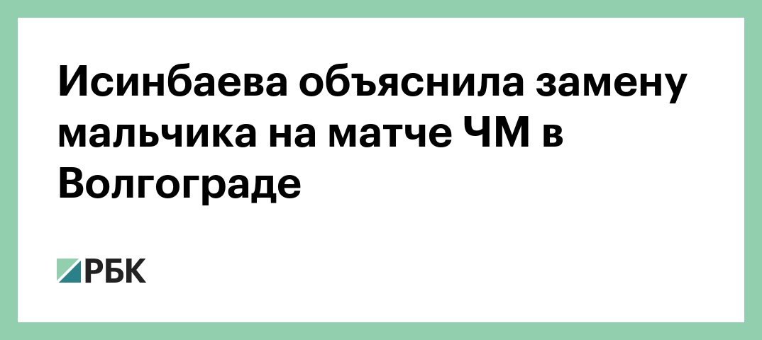 Воспитанник волгоградского социально-реабилитационного центра для несовершеннолетних, сопровождавший на поле футболистов на матче Англия — Тунис, изначально должен был выйти на стадион, сообщила олимпийская чемпионка Елена Исинбаева на своей странице в Instagram. Так она отреагировала на появившуюся в СМИ информацию, что вместо ребенка из социально-реабилитационного центра в Камышине на поле вышел сын чиновницы.