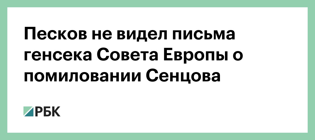 Пресс-секретарь президента России Дмитрий Песков заявил, что не видел письмо генерального секретаря Совета Европы Турбьена Ягланда с просьбой помиловать украинского режиссера Олега Сенцова. Об этом сообщает корреспондент РБК.