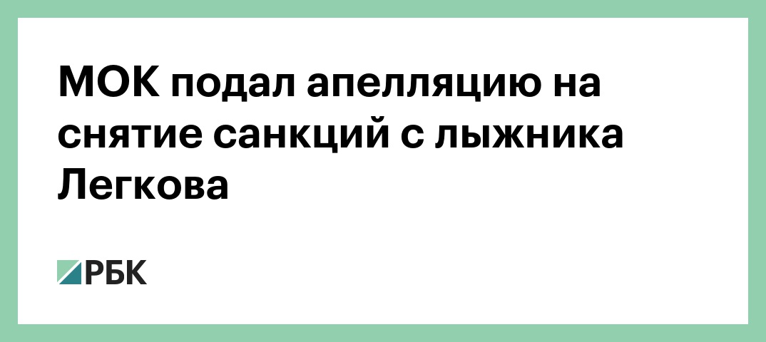 Международный олимпийский комитет (МОК) подал апелляцию в Федеральный суд Швейцарии на решение Спортивного арбитражного суда (CAS) о снятии санкций с российского лыжника Александра Легкова на пожизненное отстранение от участия в Олимпийских играх. Об этом сообщили ТАСС в пресс-службе суда.