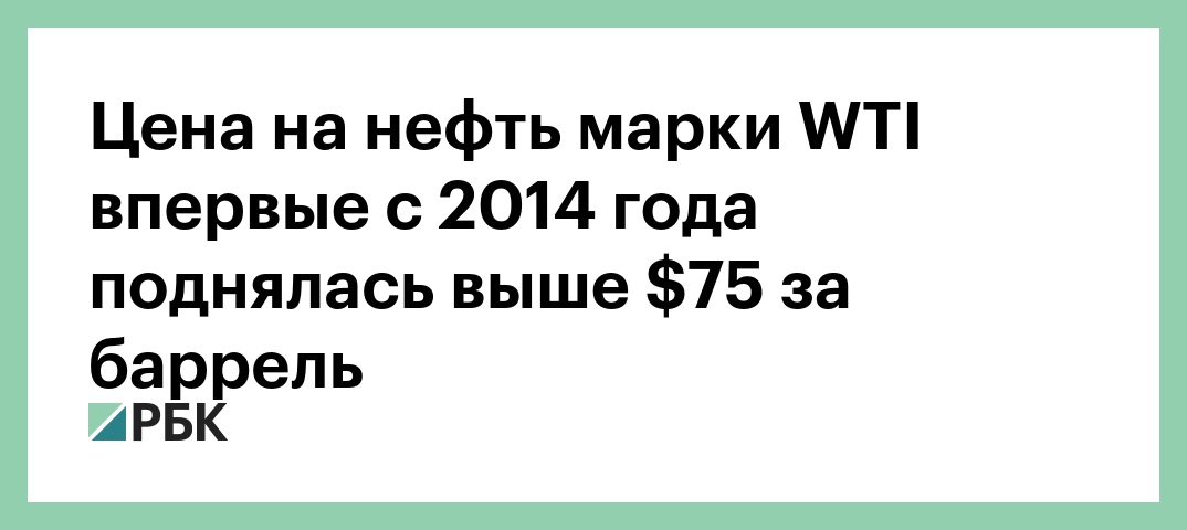 Цена на нефть марки WTI поднялась выше $75 за баррель впервые с конца 2014 года. Согласно данным на сайте Интерконтинентальной биржи ICE, к 16:54 мск нефть стоила $75,23.
