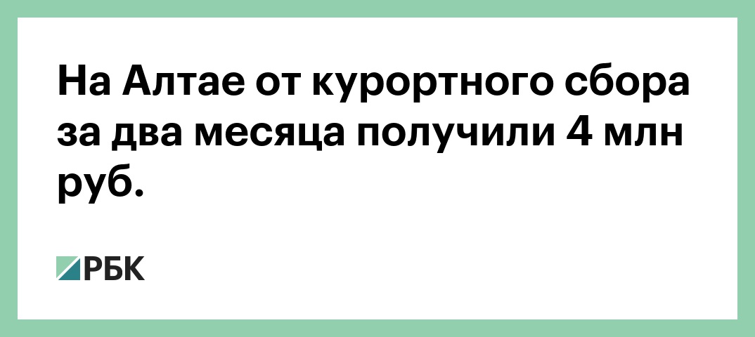 В Алтайском крае в городе Белокуриха курортный сбор, введенный 1 мая в экспериментальном режиме, принес за два месяца более 4 млн руб. Это следует из поступившего в РБК сообщения регионального управления по внешним связям, туризму и курортному делу.