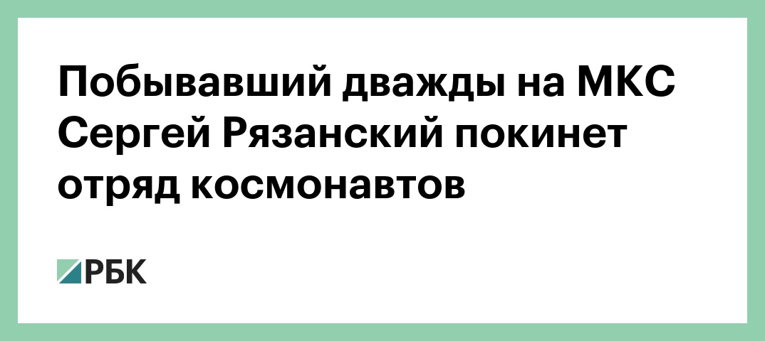 Инструктор, космонавт и испытатель Сергей Рязанский, дважды побывавший на Международной космической станции, покинет отряд космонавтов 16 июля. Об этом сообщается на сайте Центра подготовки космонавтов (ЦПК) имени Гагарина.