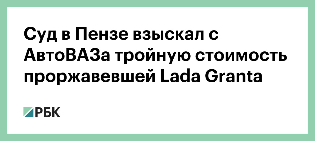 Суд в Пензе взыскал с АвтоВАЗа тройную стоимость проржавевшей Lada Granta