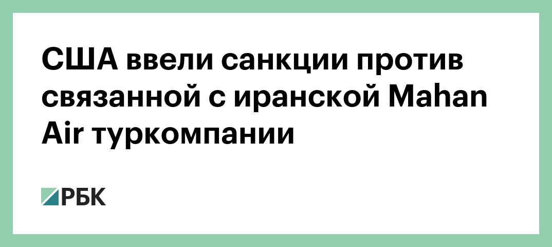 Минфин США ввел санкции против туристической компании Mahan Travel, связанной с иранской авиакомпанией Mahan Air. Об этом говорится в документе, опубликованном на сайте министерства. Гражданам США запрещено заключать с ней какие-либо сделки. Активы компании на территории Штатов будут заморожены.