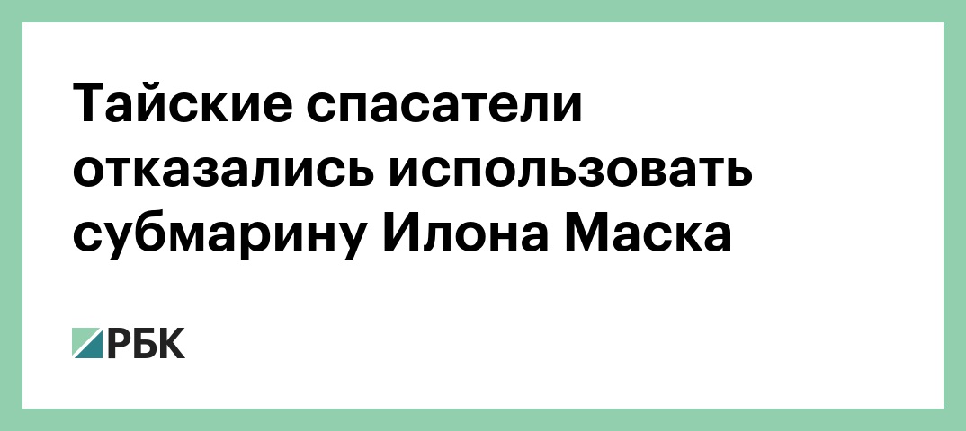 Руководитель центра координации спасательных работ по вызволению подростков из пещеры в Таиланде Наронгсак Осатанакорн заявил, что власти не будут пользоваться миниатюрной субмариной, предоставленной главой Tesla и SpaceX Илоном Маском. Об этом сообщает The Guardian, корреспондент которой освещает ход спасательных работ.