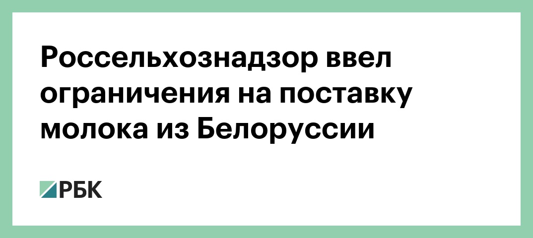 Россельхознадзор ввел ограничения на поставку в Россию молока, произведенного на трех предприятиях Белоруссии, объяснив свое решение нарушениями ветеринарно-санитарных требований. В сообщении ведомства говорится, что под запрет попали поставки молока компании «Данон Пружаны», Минского молочного завода и Несвижского завода детского питания в связи с выявлением в продукции превышения массовой доли нитратов.