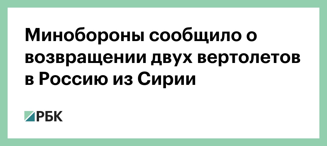 Минобороны сообщило о возвращении двух вертолетов в Россию из Сирии