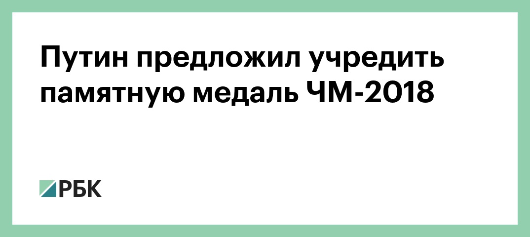 «Считаю целесообразным учредить памятную медаль чемпионата мира ФИФА в России и обязательно поощрить тех, кто внес значимый вклад в реализацию этого масштабного проекта», — заявил он на совместном заседание совета по развитию физической культуры и спорта и наблюдательного совета оргкомитета «Россия-2018».