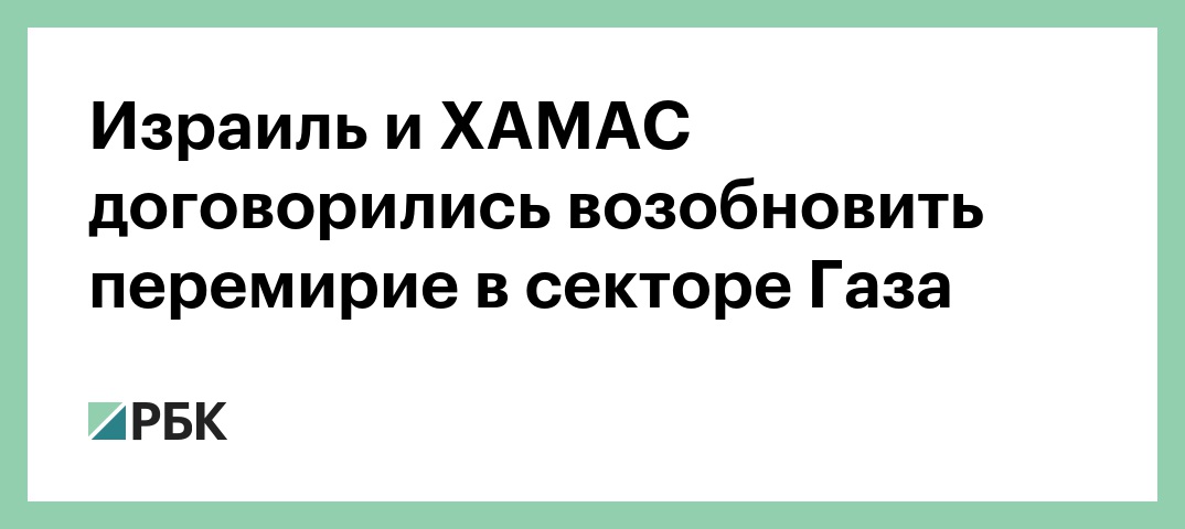 Власти Израиля и представители палестинского исламистского движения ХАМАС договорились возобновить перемирие в секторе Газа. Об этом Reuters сообщил пресс-секретарь движения Фаузи Бархум. По его словам, договоренность была достигнута «усилиями Египта и ООН».
