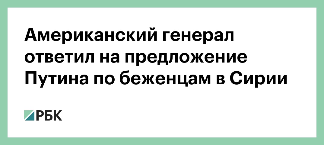 Американский генерал ответил на предложение Путина по беженцам в Сирии