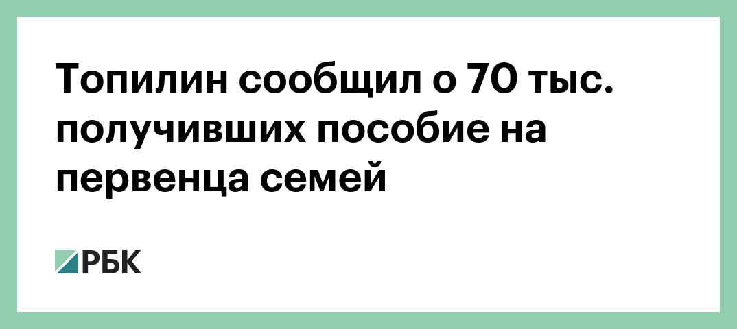Ежемесячное пособие при рождении первого ребенка с 1 января 2018 года получили более 70 тыс. российских семей, сообщил министр труда и социальной защиты Максим Топилин, передает корреспондент РБК.