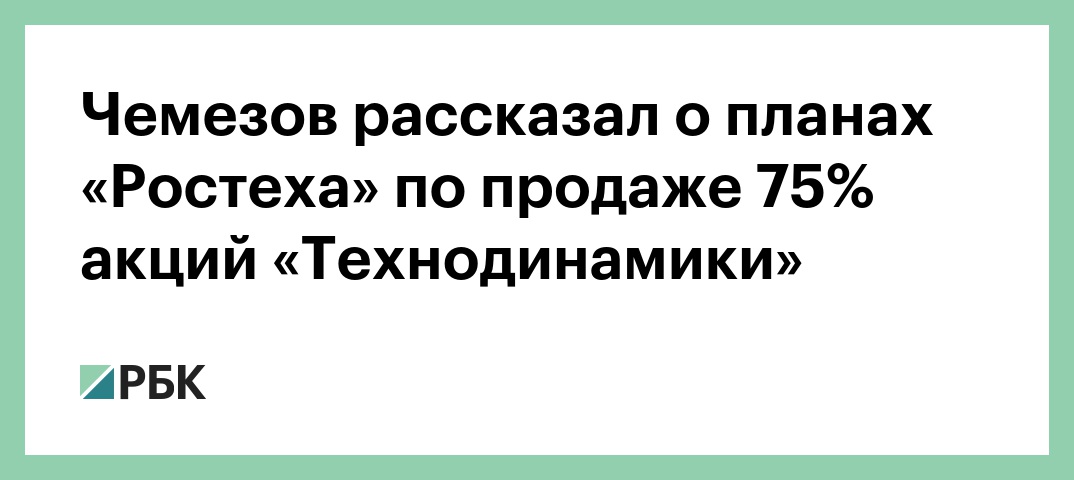 «Ростех» рассчитывает в конце 2018 года продать 75% акций «Технодинамики» (входит в госкорпорацию). Об этом заявил журналистам глава «Ростеха» Сергей Чемезов, передает корреспондент РБК.