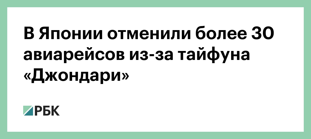 Более 30 внутренних авиарейсов в Японии отменены из-за приближения тайфуна «Джондари». Об этом сообщает телеканал NHK.
