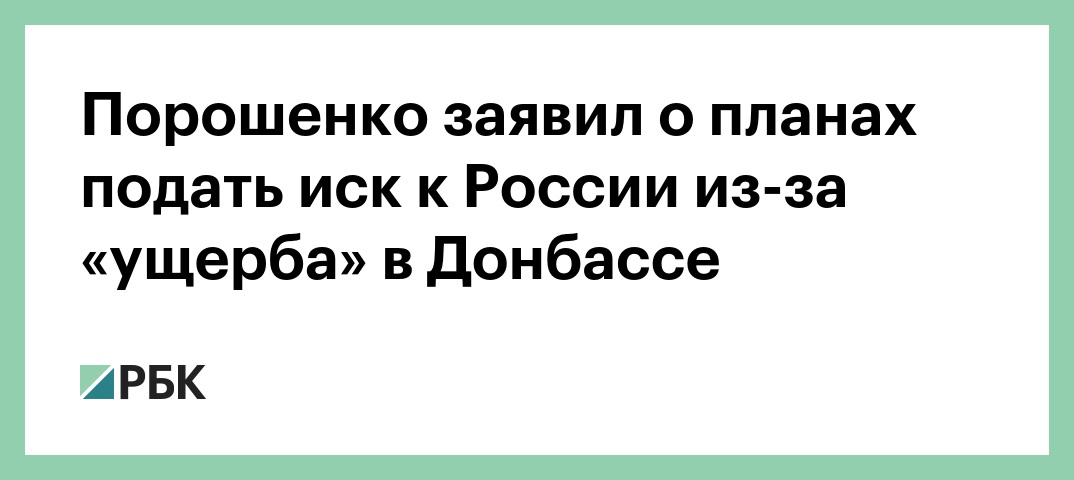 Президент Украины Петр Порошенко планирует выдвинуть иск против России в связи с «нанесенным ущербом» в Донбассе. Об этом глава государства написал на своей странице в Facebook.