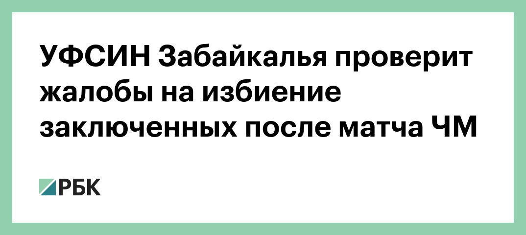 Сотрудники УФСИН России по Забайкальскому краю начали проверку жалоб на избиение заключенных в исправительной колонии № 5 (ИК-5) в пригороде Читы, сообщил РБК начальник пресс-службы ведомства Вадим Пулым. Отбывавшие наказание рассказывали, что инцидент произошел сразу после матча Россия — Хорватия.