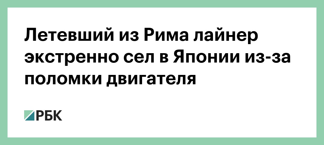 По данным агентства, самолет выполнял рейс из Рима в Нариту. По предварительным данным, причиной экстренной посадки лайнера стала неисправность двигателя.