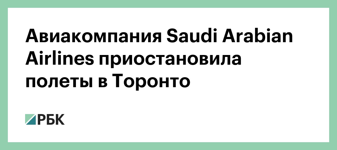 Авиакомпания Саудовской Аравии Saudi Arabian Airlines приостанавливает рейсы в Торонто из-за разногласий властей королевства и Канады. Об этом сообщает Al Jazeera со ссылкой на сообщение авиаперевозчика.
