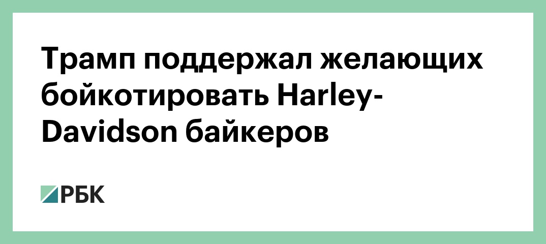 «Многие владельцы Harley-Davidson планируют объявить бойкот компании, если ее производство уйдет в офшор. Отлично! Большинство компаний идут, наоборот, к нам, в том числе конкуренты Harley. Плохой ход! Скоро у США будут равные шансы на успех или лучше», — написал американский лидер.