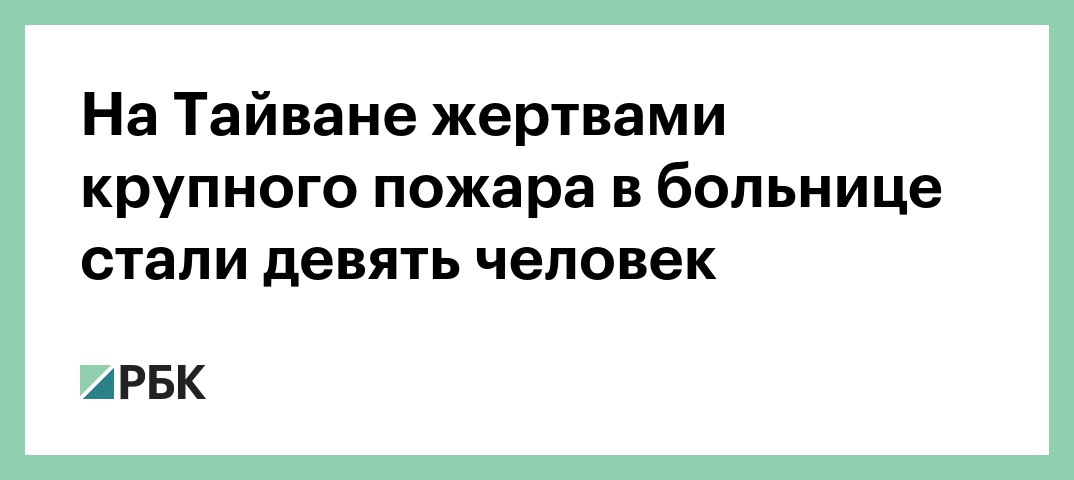 Крупный пожар произошел в одной из больниц тайваньского Синьбэя, в результате чего погибли по меньшей мере девять человек. Об этом сообщает Центральное информационное агентство Тайваня.
