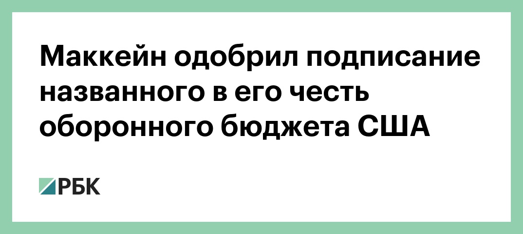 Американский сенатор от штата Аризона Джон Маккейн приветствовал подписание президентом США Дональдом Трампом оборонного бюджета, который был назван в его честь. Заявление Маккейна опубликовано на его сайте.