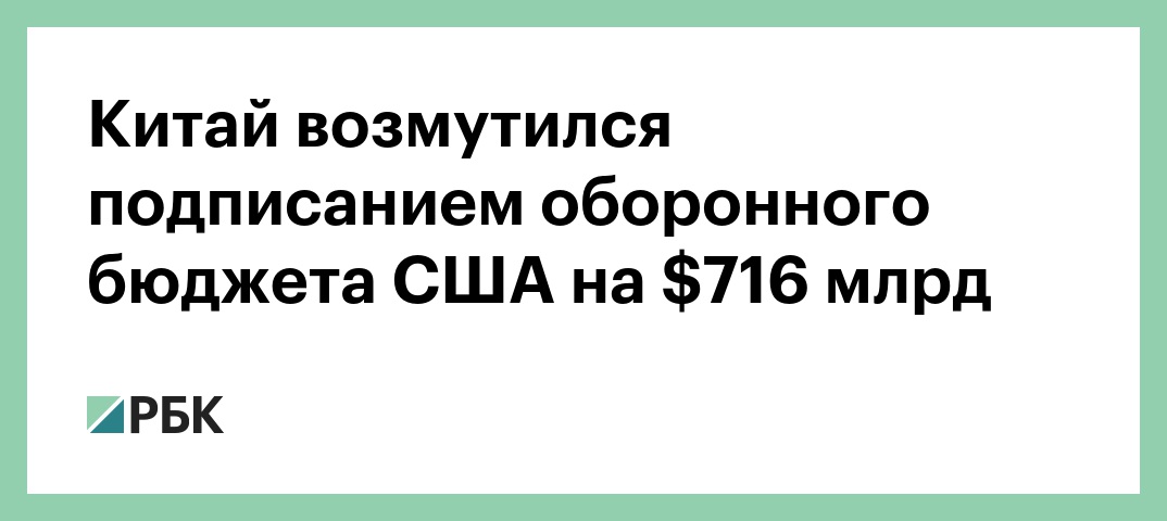 Китай возмутился подписанием оборонного бюджета США на $716 млрд