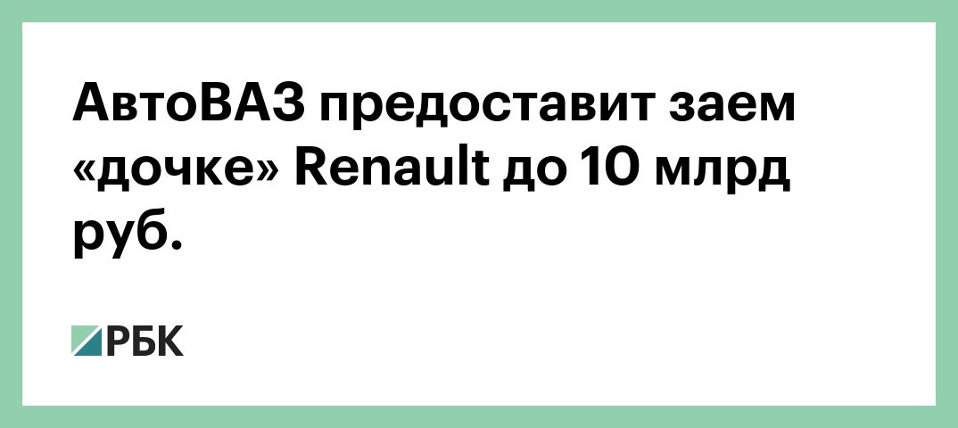 АвтоВАЗ предоставит Renault Finance (100% принадлежит Renault) возобновляемый заем в размере до 10 млрд руб. до марта 2023 года, следует из сообщения автопроизводителя. Соответствующий договор заключен 15 августа.