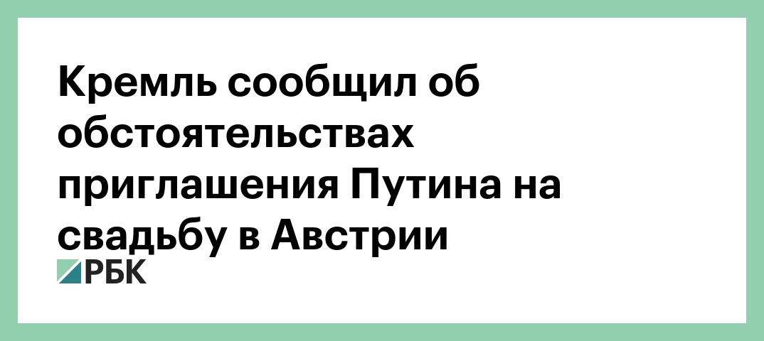 Президент России Владимир Путин получил приглашение на свадьбу главы МИД Австрии во время своего последнего визита в Вену. Об этом журналистам сообщил пресс-секретарь президента Дмитрий Песков, передает корреспондент РБК.