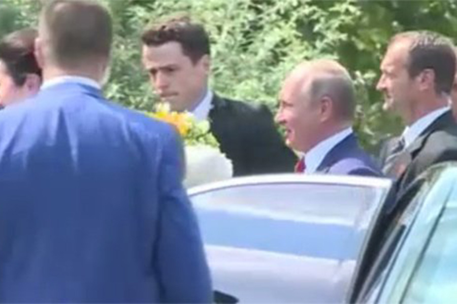 Позднее телеканал опубликовал фотографию с российским президентом с букетом цветов. По его данным, Путин прибыл на свадебные торжества.