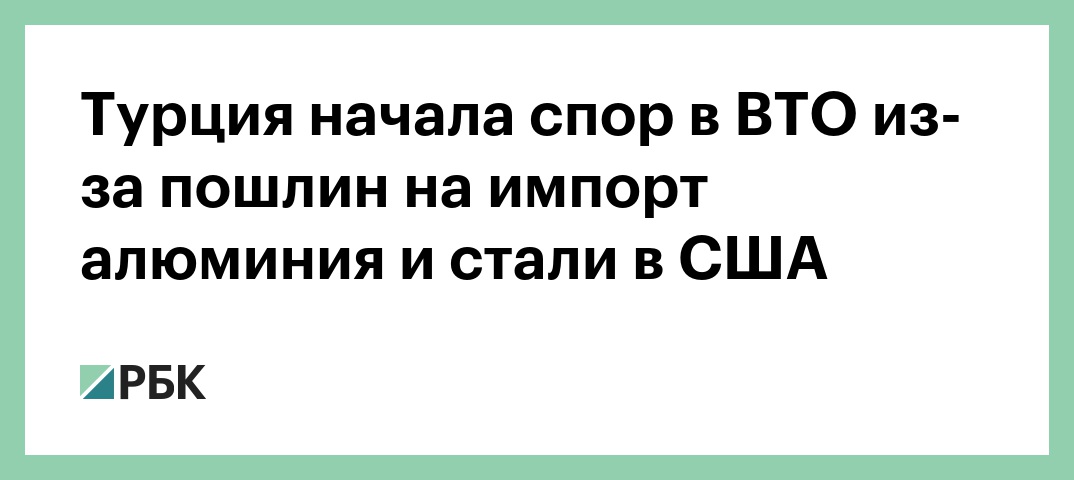 «Турция запросила ВТО провести консультации с США касательно дополнительных пошлин на импорт», — говорится в сообщении. В ВТО уточнили, что после поступления жалобы, организация начинает спор между сторонами. Если за 60 дней они не найдут решения, которое устраивает всех, то заявитель может попросить у ВТО вынести свое решение.