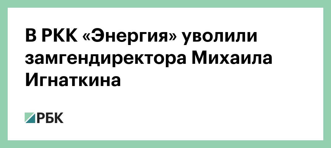Заместитель гендиректора ракетно-космической корпорации «Энергия» (РКК «Энергия») Михаил Игнаткин уволен, сообщается на сервере раскрытия корпоративной информации.