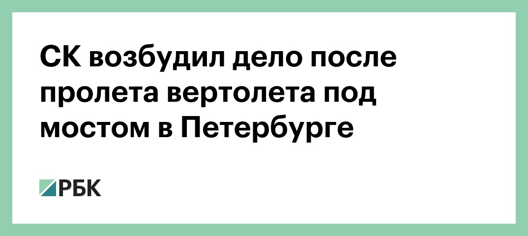 Следственный комитет России (СКР) возбудил уголовное дело об угрозе безопасной эксплуатации транспортных средств после того, как 10 августа вертолет пролетел под мостом Западного скоростного диаметра (ЗСД) в Санкт-Петербурге, сообщили РБК в СК.