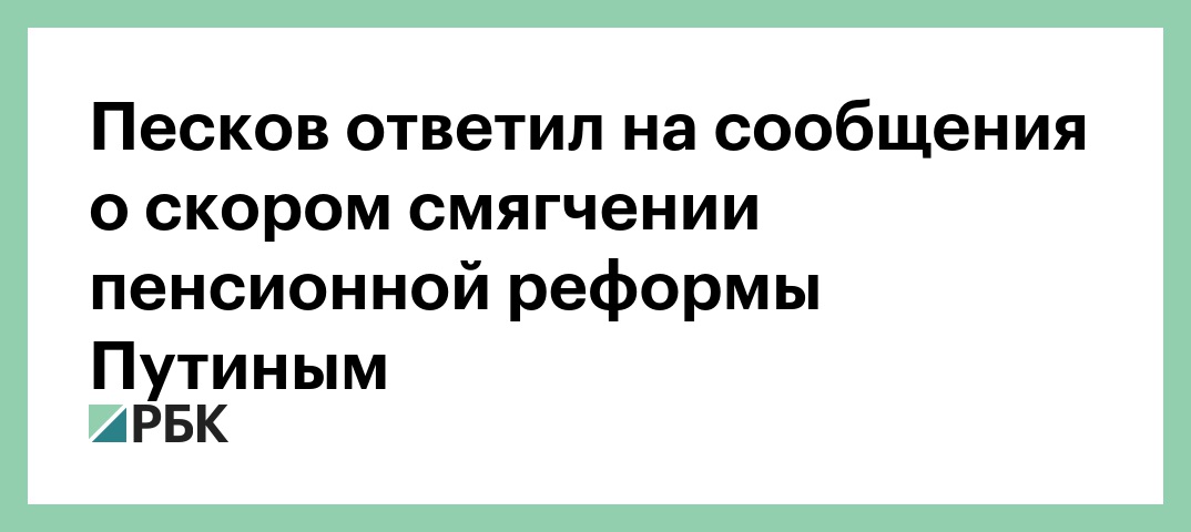 Ранее о том, что Путин в конце августа может объявить о смягчении пенсионной реформы, сообщали источники телеканала RTVi, близкие к администрации президента и «Единой России». По их словам, глава государства может высказать свою позицию по пенсионной реформе во время одной из поездок в регионы, это должно произойти до 1 сентября.