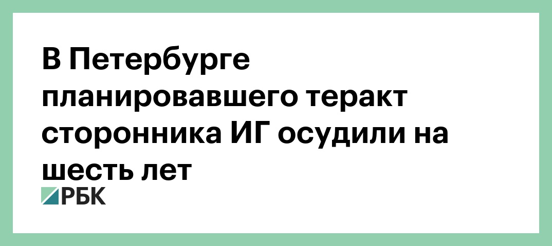 Сторонника запрещенной в России террористической организации «Исламское государство», планировавшего теракт в Санкт-Петербурге, приговорили к шести годам колонии строгого режима. Об этом сообщили РБК в объединенной пресс-службе судов города.