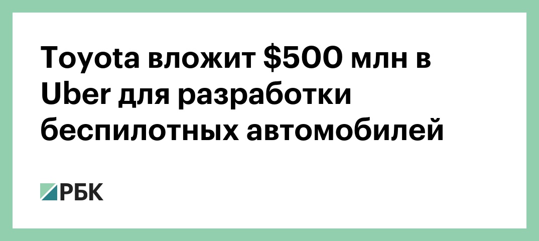 Производитель автомобилей Toyota инвестирует $500 млн в компанию Uber в рамках проекта по разработке беспилотных автомобилей. Об этом сообщает The Wall Street Journal со ссылкой на источники.