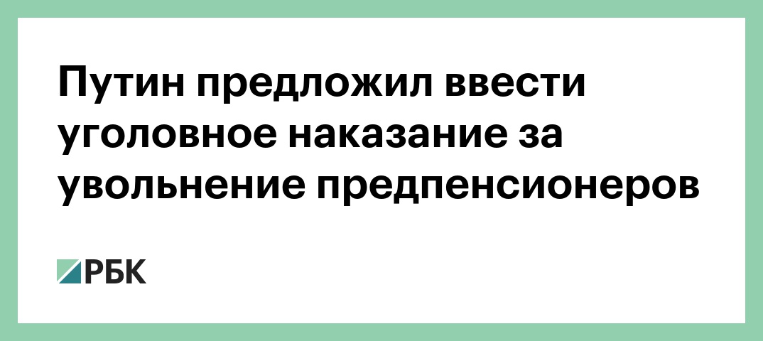 «Считаю необходимым установить для работодателей административную и даже уголовную ответственность за увольнение работников предпенсионного возраста, а также за отказ в приеме на работу граждан по причине их возраста», — сказал Путин, подчеркнув, что на время переходного периода предпенсионным стоит считать возраст за 5 лет до выхода на пенсию.