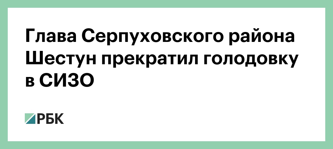 Глава Серпуховского района Московской области Александр Шестун прекратил голодовку в СИЗО «Матросская Тишина» по рекомендации врачей. Об этом сообщила РБК его жена Юлия Шестун.